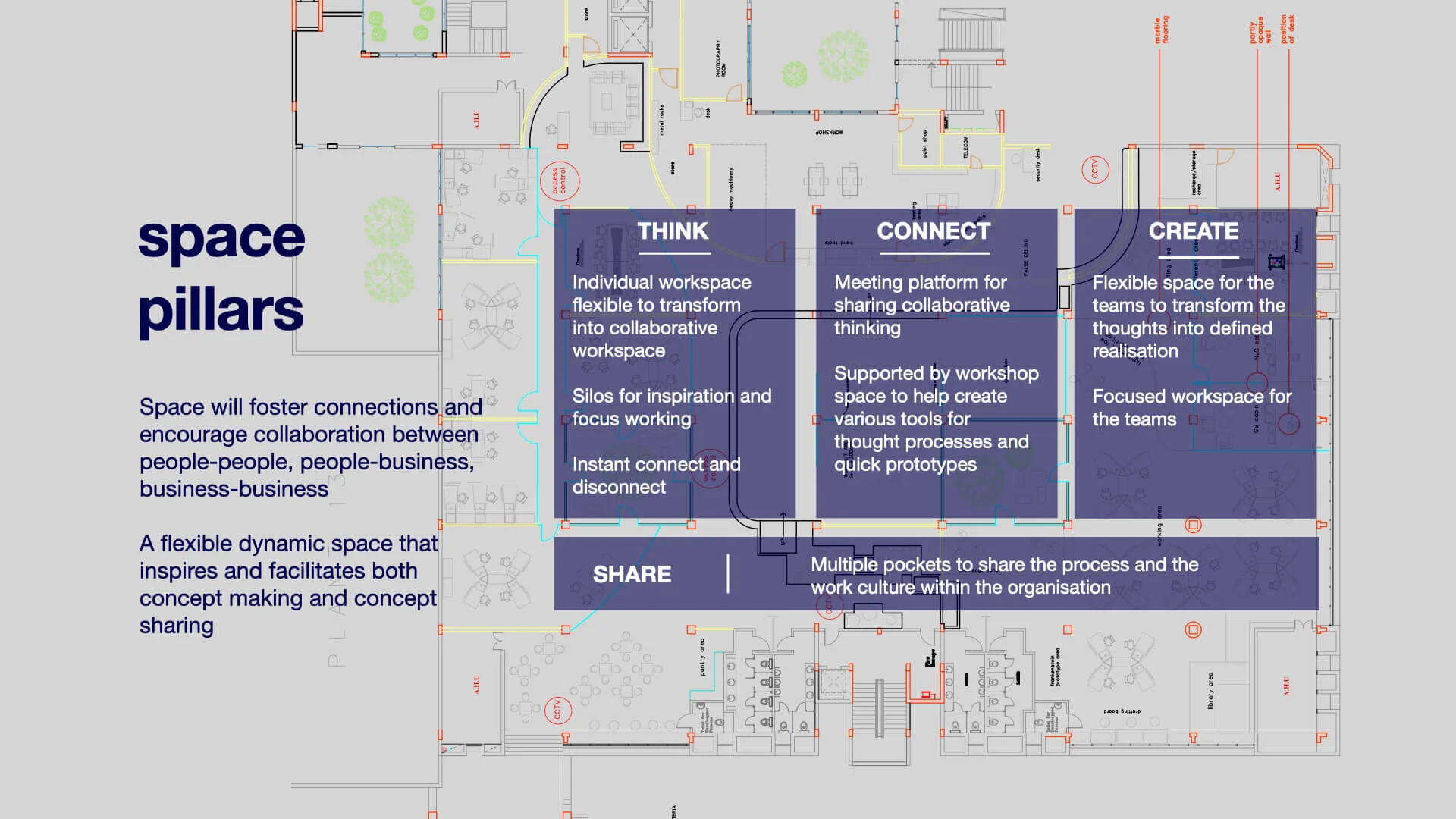 The “CREATE” zone is a restricted zone and is comprised of project rooms which can be modified according to nature of a project.